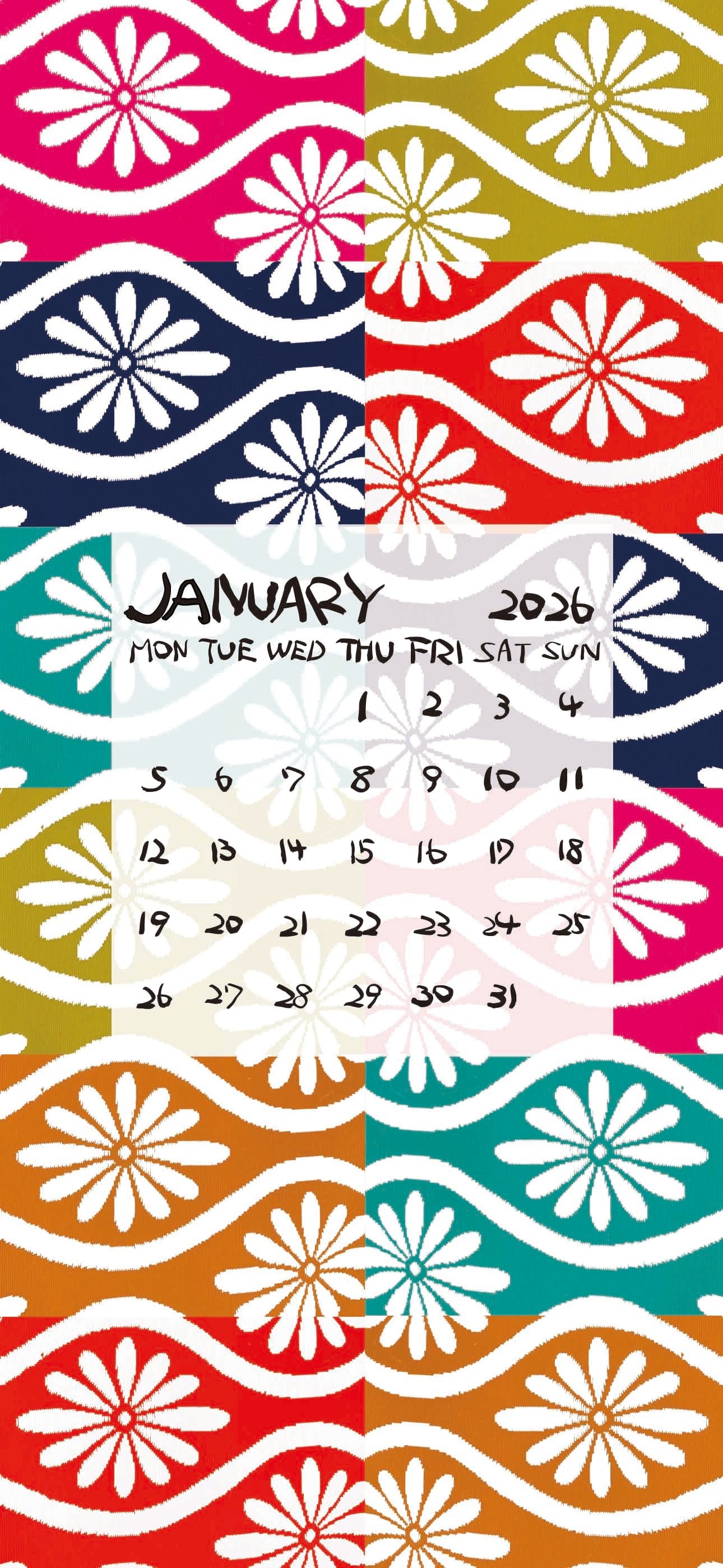 ❁東 泰弘❁帯カレンダー花 2026年1月 スマホ壁紙 1290*2796