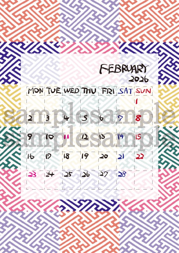 ❁東 泰弘❁帯カレンダー 紗綾形(さやがた) 2026年2月 a4