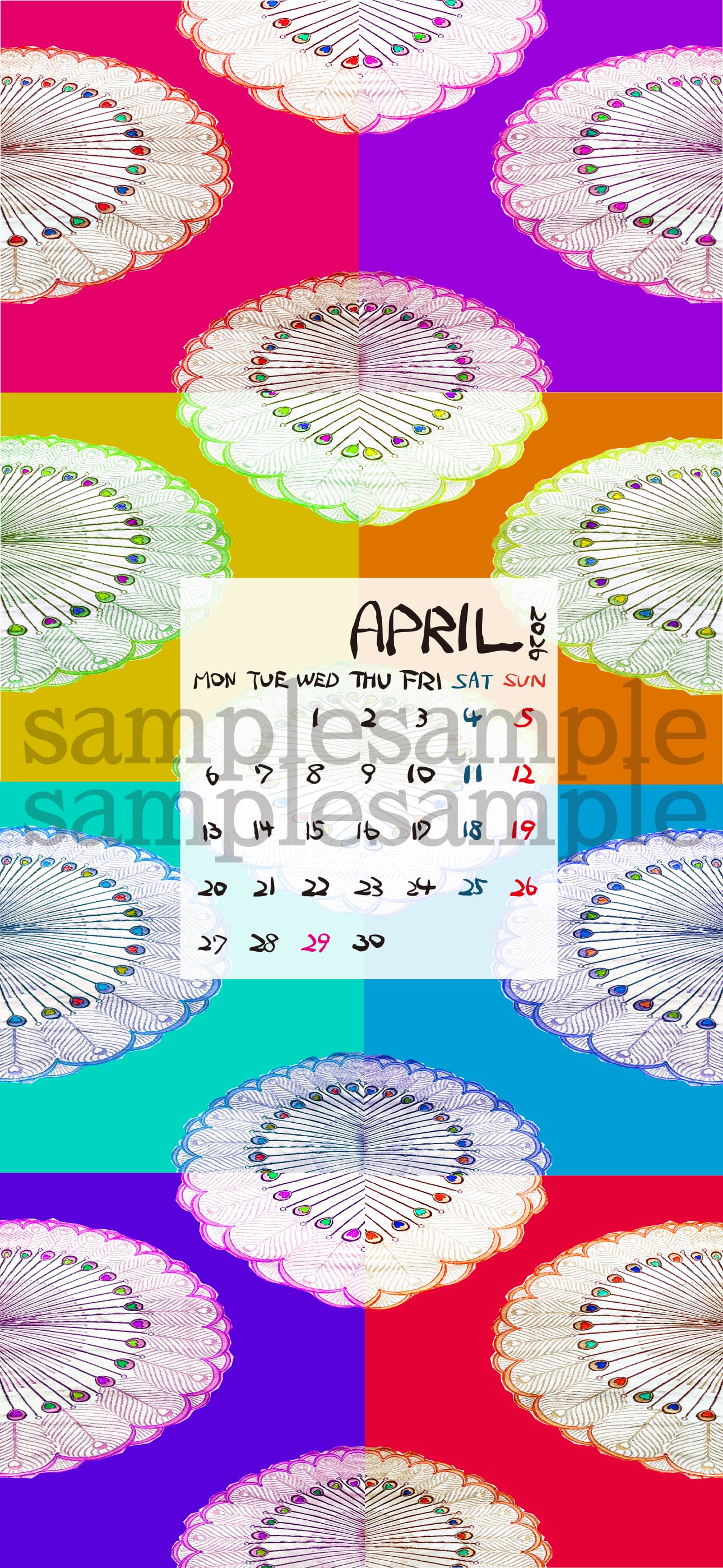 ❁東 泰弘❁ 帯カレンダー【孔雀羽(くじゃくはね)文様】 2026年4月 スマホ壁紙 1290*2796