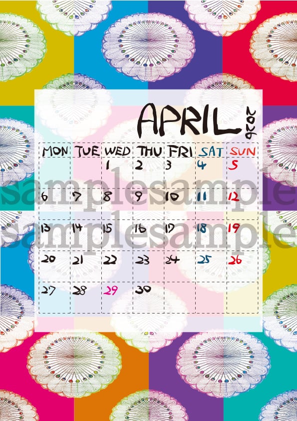 日本の伝統である帯の美しい柄をモチーフに、ポップでカラフルなカレンダーに仕上げました。